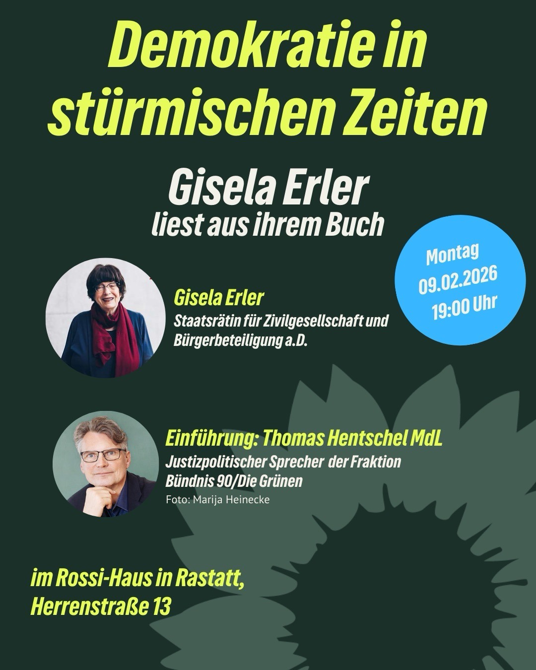 Um diese Fragen geht es in dem Buch „Demokratie in stürmischen Zeiten“ aus dem Gisela Erler liest. Nach der Lesung ist Zeit für den Austausch.
